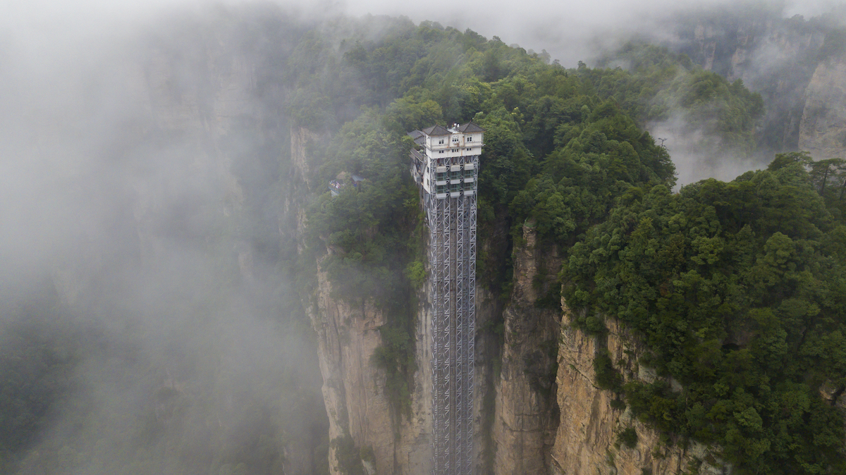 È noto anche come Ascensore dei Cento Dragoni, ed è stato costruito tra il 1999 al 2002. In soli tre anni è stata realizzata questa struttura che da 16 anni è nel libro dei Guinness dei primati non solo perché è l’ascensore più alto del mondo, ma è anche il più veloce e il più pesante.