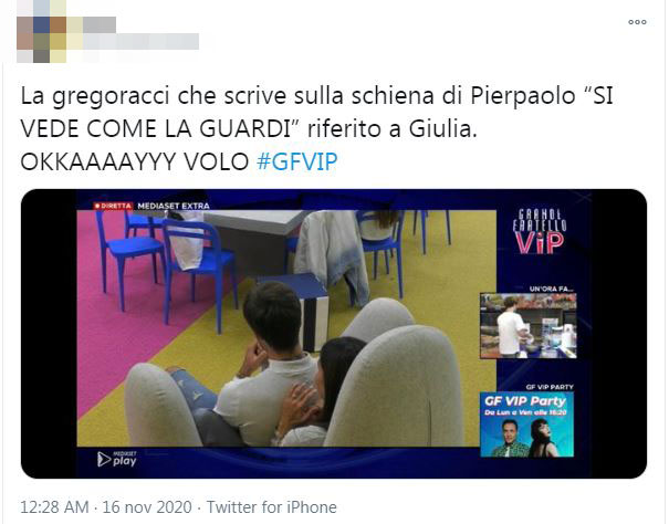 Da quando Giulia Salemi è entrata nella casa del GF Vip, Elisabetta Gregoraci sembra essere diventata gelosa di Pierpaolo Pretelli. Secondo la showgirl di Soverato, l’ex velino avrebbe un debole per l’influencer italo-persiana. Mentre erano in salone, lei avrebbe scritto con le dita sulla schiena di lui: “Si vede come la guardi”…