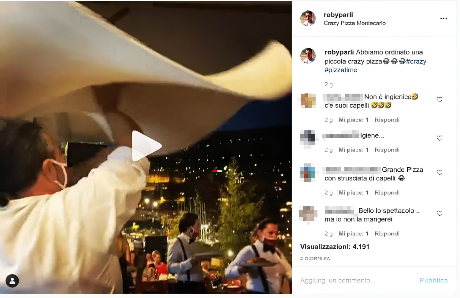 “Non è igienico”, scrive un utente. E un altro gli fa eco: “Grande Pizza con strusciata di capelli”. E un’altra chiosa: “Bello lo spettacolo… ma io non la mangerei”…