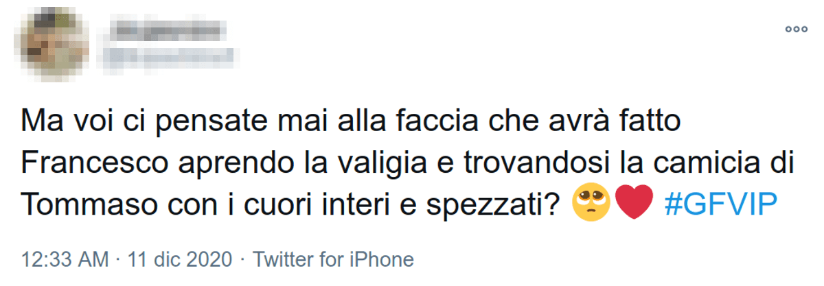 Qualcuno ha inoltre pensato che, con ogni probabilità, Francesco indosserà quella camicia in studio nella prossima puntata, venerdì 11 novembre, apposta per Tommaso Zorzi.