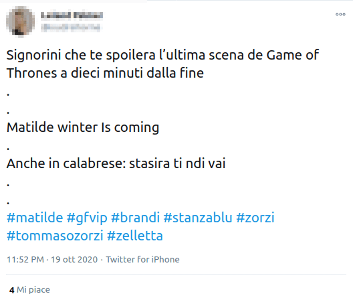 Alla fine, infatti, soltanto il 16% dei concorrenti ha votato per salvare la showgirl che, quindi, ha effettivamente dovuto lasciare il gioco, come lo spoiler di Signorini aveva anticipato.