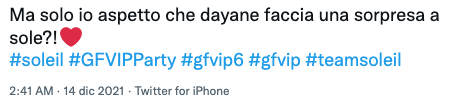 Il pubblico ora tifa per Soleil e spera in una sorpresa proprio da parte di Dayane: averla anche solo per un’istante nella casa del Gf Vip potrebbe risollevarle il morale e farle dimenticare tutta la vicenda turbolenta accaduta con Alex Belli.