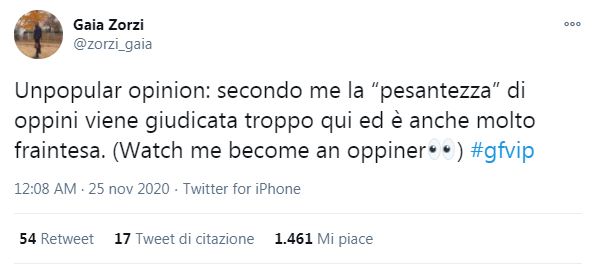 Parole che hanno suscitato un ampio dibattito tra gli utenti. Hanno esultato compiaciute le fan di Oppini: “Gaia una di noi” ha gongolato più di qualcuno.