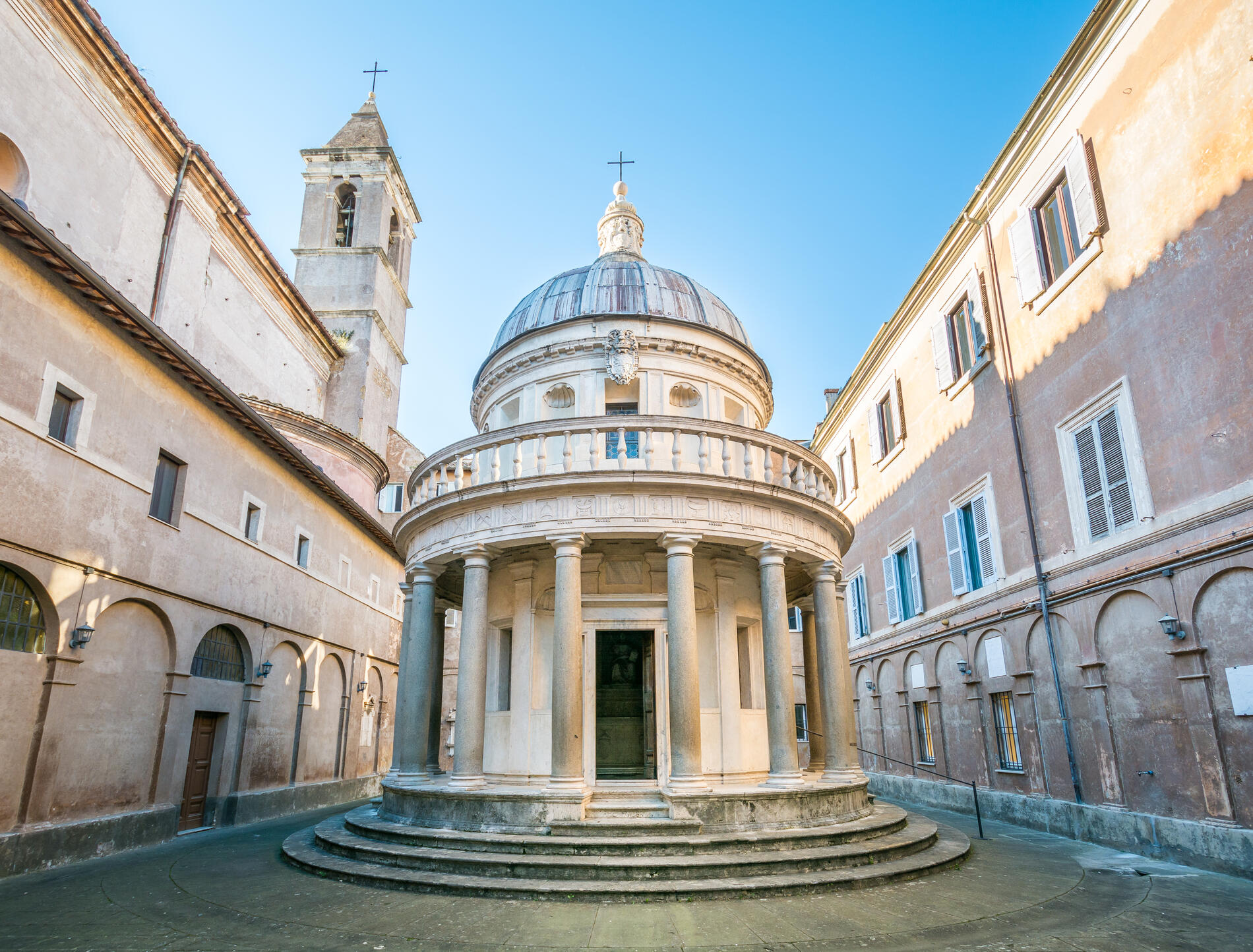 Sempre al Gianicolo, la Chiesa di San Pietro in Montorio offre una vista mozzafiato su Roma. Qui sorge il Tempietto del Bramante, un capolavoro rinascimentale e un simbolo dell’architettura classica moderna.