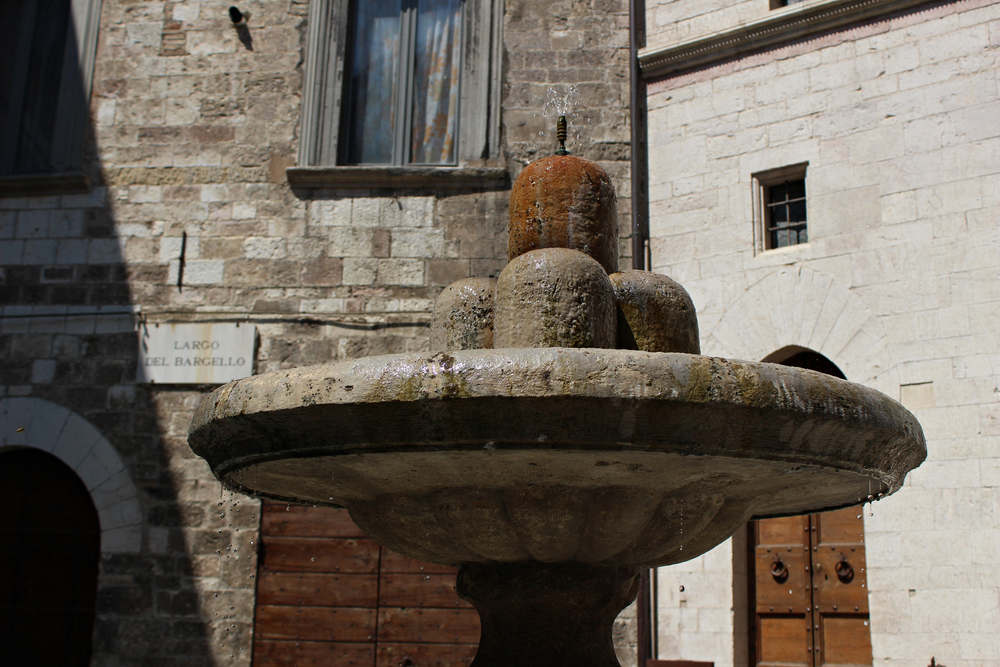 Il simbolo per eccellenza della rinomata (e goliardica) follia dei cittadini di Gubbio è la fontana dei matti o meglio del Bargello. Sorge di fronte all’omonimo palazzo all’interno del quale troviamo il Museo della balestra e risale al 1500 anche se venne ricostruita quasi completamente intorno al 1800.