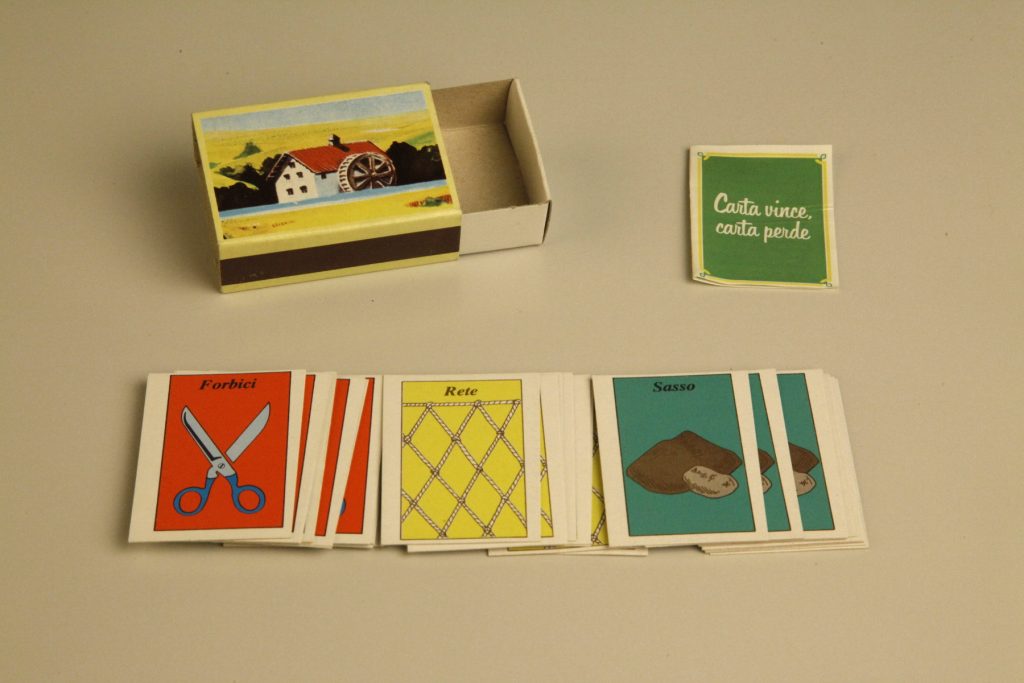 Era il 1983 e la prima sorpresa ad essere inserita in una confezione di merendine fu ‘carta vince carta perde’. Si trattava di una sorta di morra con le carte, sulle quali erano raffigurati una forbice, un sasso e una rete. All’interno della scatolina, che ricordava quella dei fiammiferi, c’era anche il foglietto con le spiegazioni su come giocare. Ne furono prodotte 1 milione di pezzi.