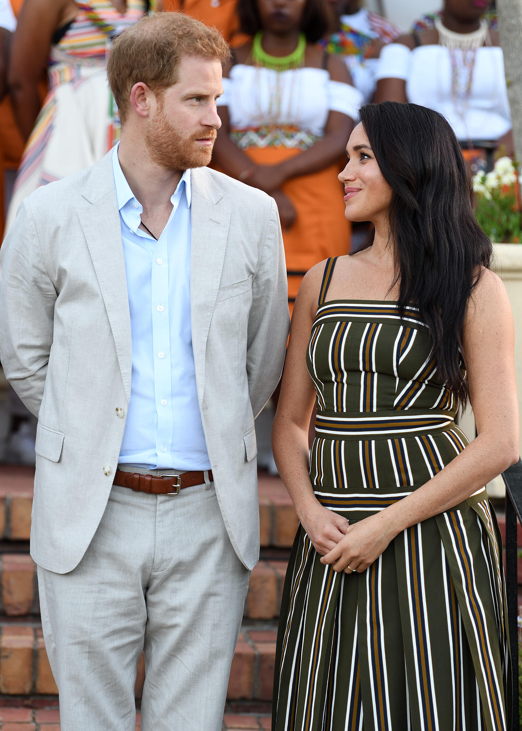 I Duchi di Sussex hanno raggiunto i giocatori negli spogliatoi per una foto di gruppo. “Venite, non siate timidi” dice Harry con fare scherzoso.