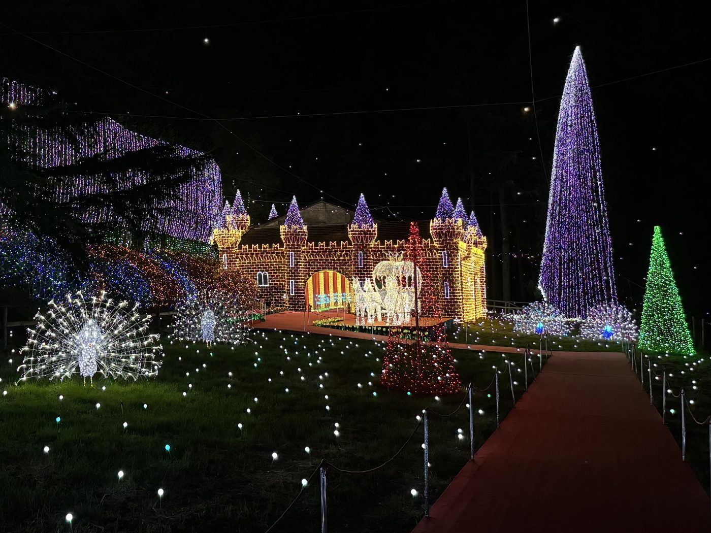 L’edizione 2025 porta con sé oltre un milione di luci LED e un percorso fiabesco di più di un chilometro. Le installazioni, realizzate a mano dal team di Lino Betti, guidano i visitatori tra castelli incantati, grotte glaciali, alberi luminosi e piccole dimore degli animali del bosco, creando un viaggio immersivo da vivere passo dopo passo.
