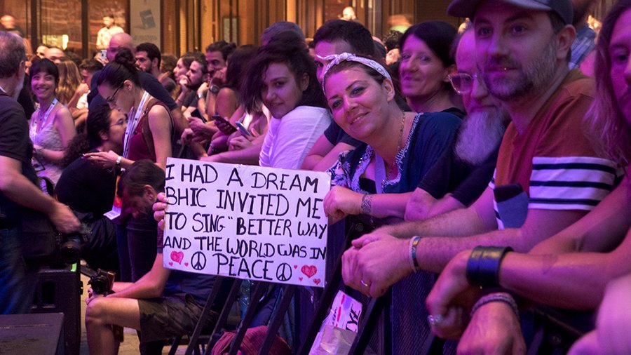 Su uno dei brani più amati (Diamonds on the inside), decide di fare un fuori programma. Chiede alla band di suonare piano..“no no più piano” (gli fa cenno con le mani), poi scavalca le spie va in proscenio chiede al pubblico di fare silenzio di ascoltarlo. Si toglie il cappello e regala un’interpretazione a cappella del brano… brividi, il pubblico fatica a trattenersi. Vuole urlare dalla felicità, accompagnarlo con il battere delle mani, ma capisce del regalo pazzesco, del magico momento che sta vivendo e chi cerca di partecipare viene invitato dagli altri ad ascoltare e basta.
