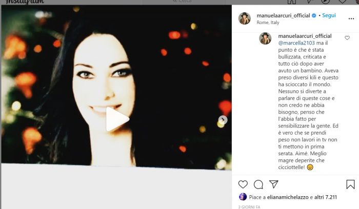 Manuela Arcuri su Instagram: "Purtroppo nel 2020 ancora non si accetta la donna per come è"