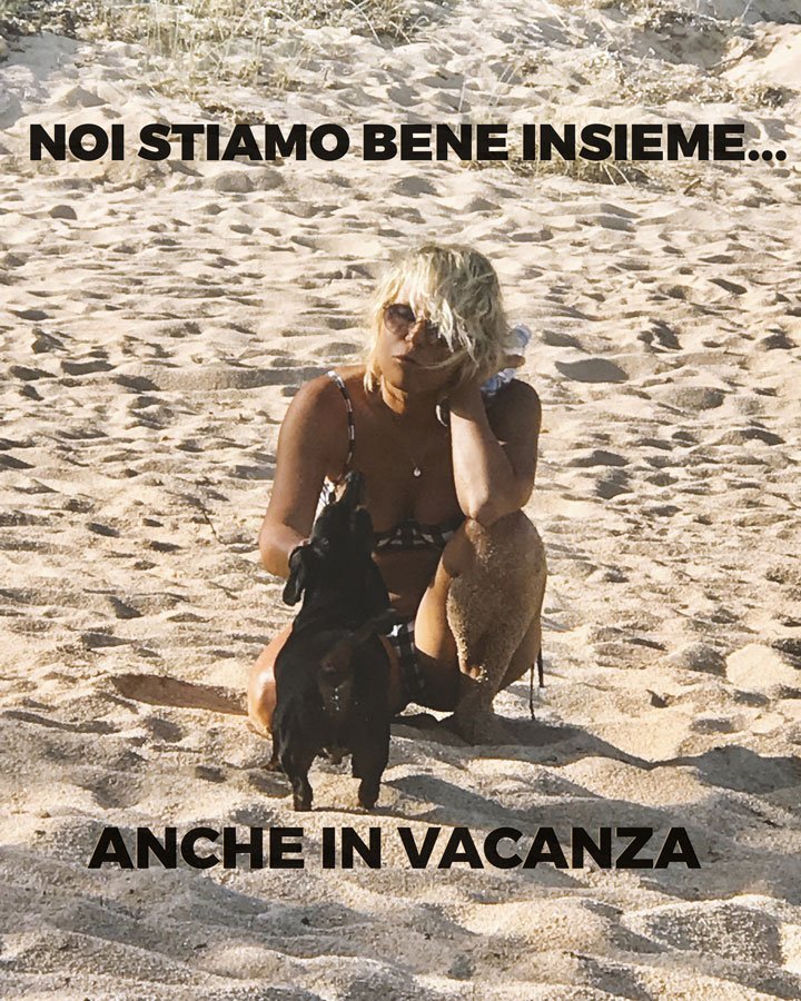 Nelle foto divenute già virali in rete, la De Filippi è in spiaggia insieme ai suoi amici a 4 zampe. “Noi stiamo bene insieme…anche in vacanza” si legge sulle foto diffuse in rete.