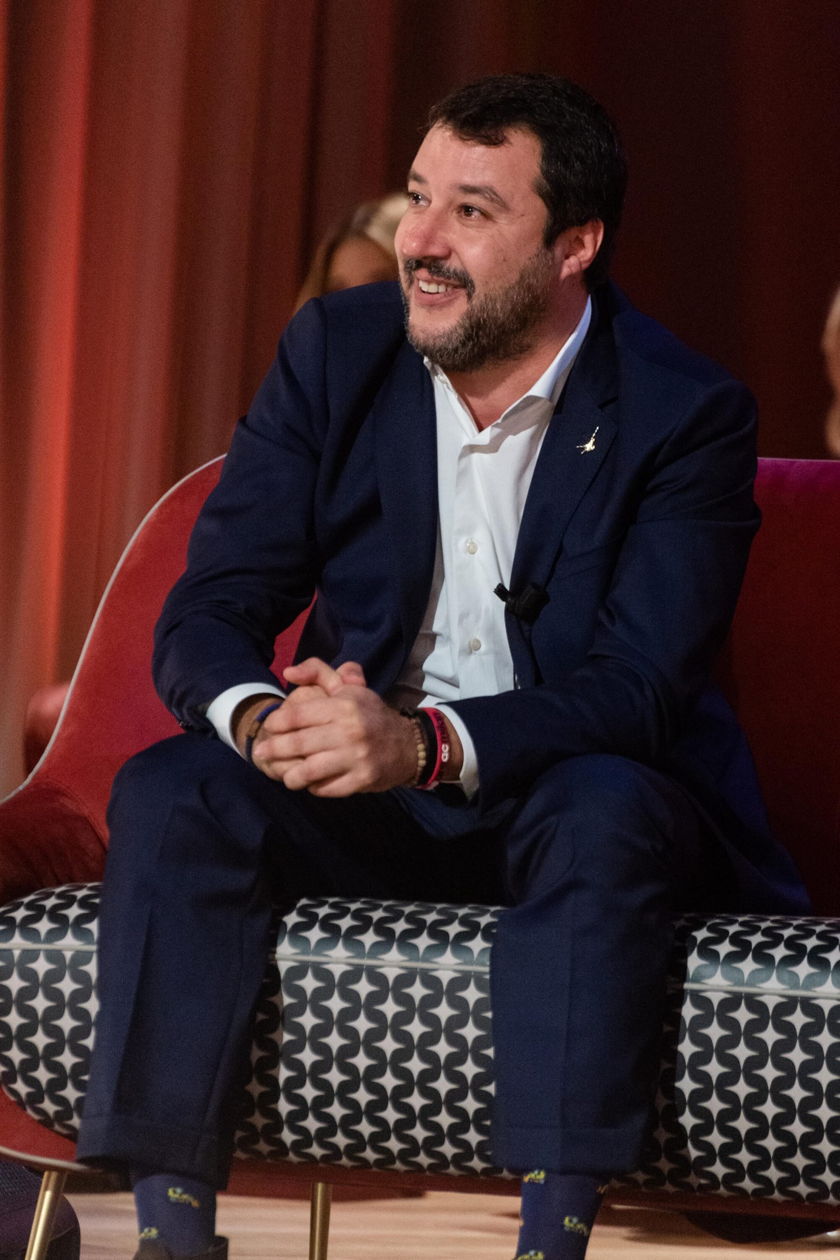 (KIKA) - ROME - Lega leader Matteo Salvini guest at Maurizio Costanzo Show. Also on stage Paola Barale, famous italian showgirl and Madonna lookalike in her youth. Madonna once posted a photo of Paola Barale on her instagram profile thinking it was her!