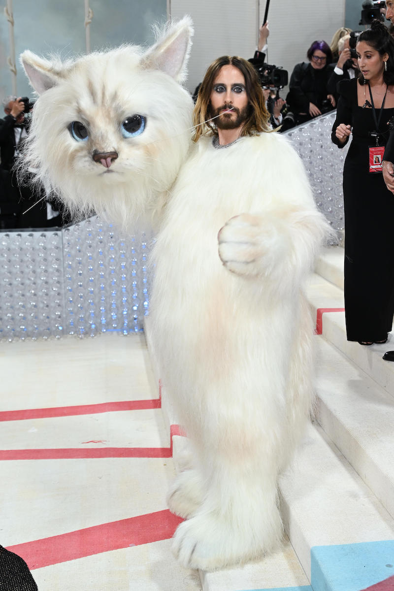 L’omaggio di Jared Leto a Karl Lagerfeld (cui era dedicata l’edizione di quest’anno) non è passato inosservato. L’attore e musicista si è vestito da Choupette, l’amatissima gatta del compianto stilista, alla quale per altro Lagerfeld aveva dedicato una collezione e che pare sia stata destinataria di buona parte della sua milionaria fortuna.