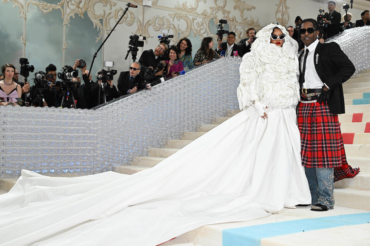 Non passano facilmente inosservati e, infatti, Rihanna e ASAP Rocky sono stati assoluti protagonisti del carpet del Met Gala 2023 (lei in Valentino Haute Couture, lui in Gucci). Il soprabito floreale della cantante è composto da camelie, simbolo molto caro alla Maison Chanel.
