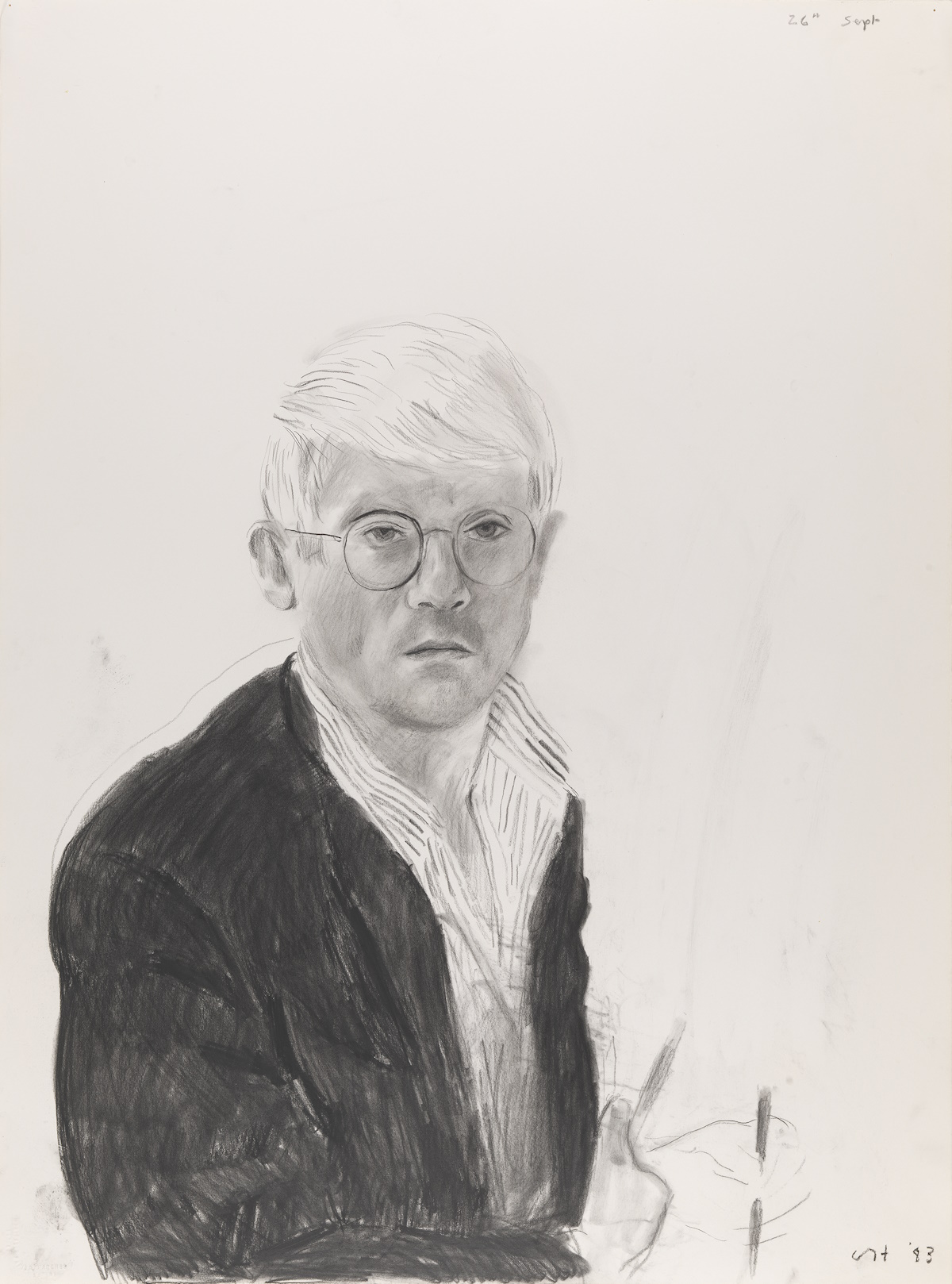 Self Portrait 26th Sept. 1983 by David Hockney. Charcoal on paper. 762 x 571.5 mm © David Hockney. The Doris and Donald Fisher Collection at the San Francisco Museum of Modern Art.
