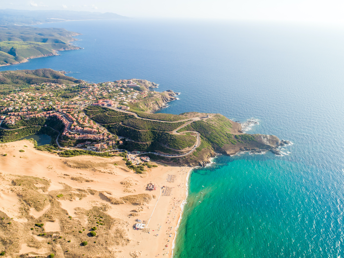 Così Benito Urgu attore sardo, inizia il suo video su Facebook mostrando la meraviglia di questo angolo di paradiso. Questa spiaggia, che sembra un deserto lambito da due promontori verdi, si trova nella Costa Verde nella parte Occidentale della Sardegna. Il suo aspetto è modellato dal vento che la rende uno spot perfetto per gli amanti del surf.