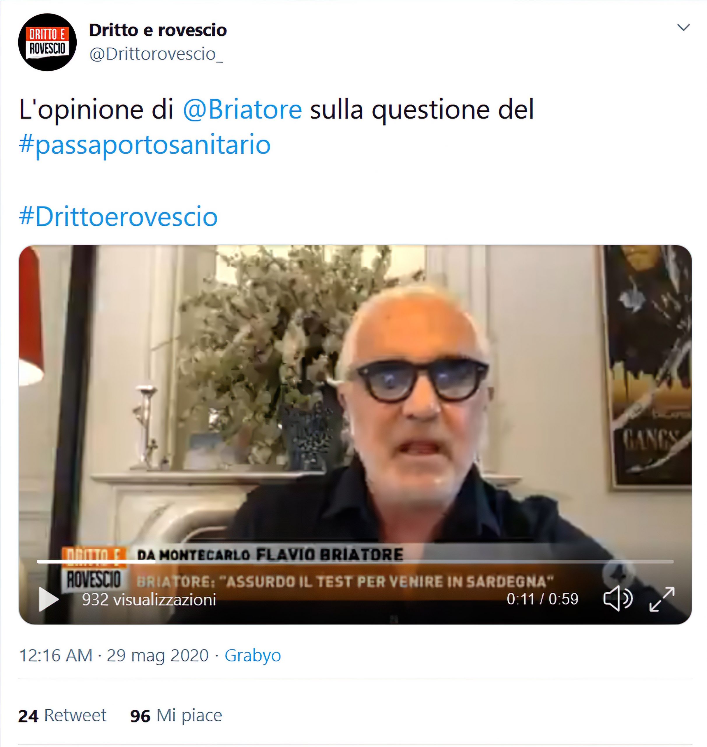 Flavio Briatore contro il passaporto sanitario