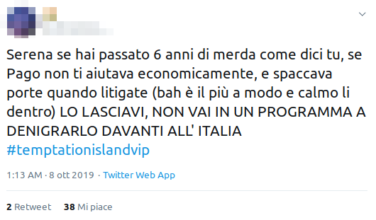 “Secondo me Serena non è soddisfatta della sua vita e quindi cerca di attribuire le colpe a Pago”