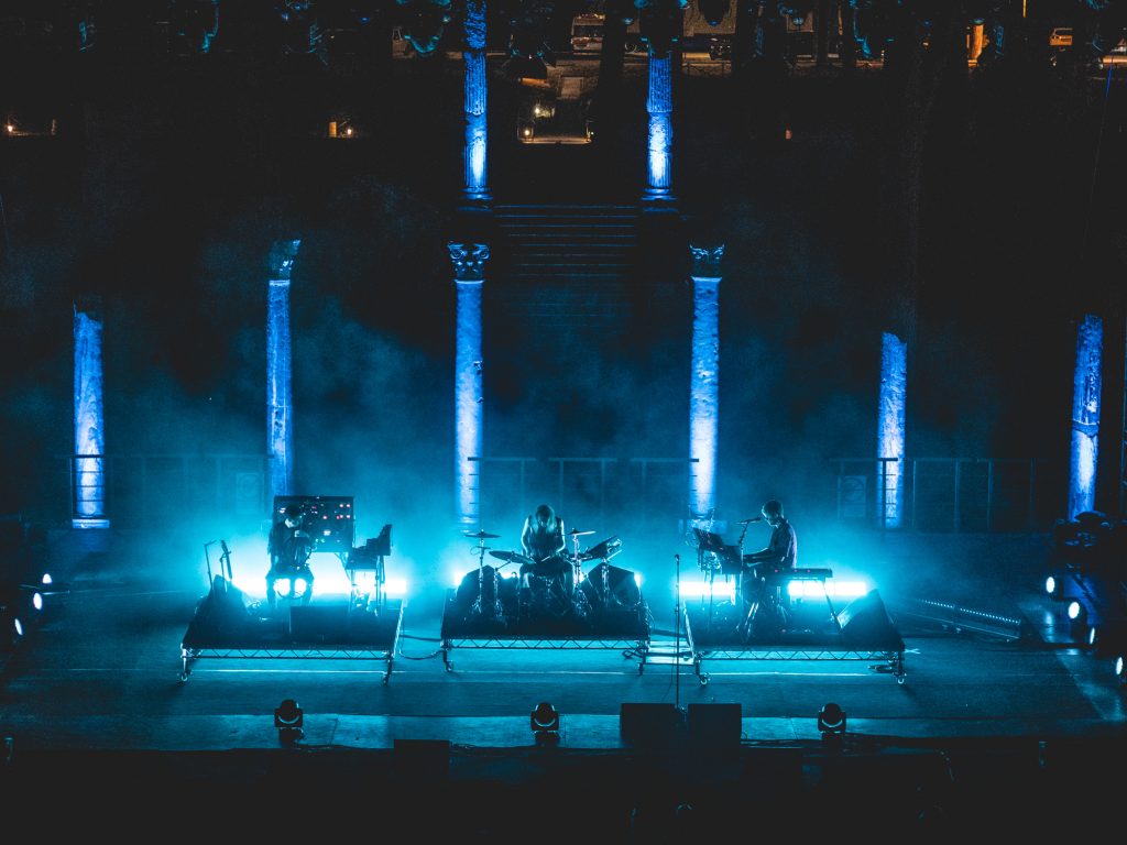 James Blake è innamorato. La sua voce fluttuante si muove tra melodie più che mai sognanti e cariche di sentimento, e a questa sua unica data italiana del tour estivo di Assume Form per Rock In Roma 2019, il Teatro Romano di Ostia Antica regala un tocco di magia, la sensazione di essere sospesi nel tempo, tra un passato di capitelli e pini marittimi e un presente di glitch sonori: Timeless, come uno dei primi brani proposti dall’artista inglese, che definisce la venue “uno dei posti più belli dove abbia mai suonato”, nonostante le fastidiose zanzare che già a pochissimi istanti dall’inizio lo costringono a una breve pausa in cui si lascia avvolgere da nuvole di spray anti-insetto.