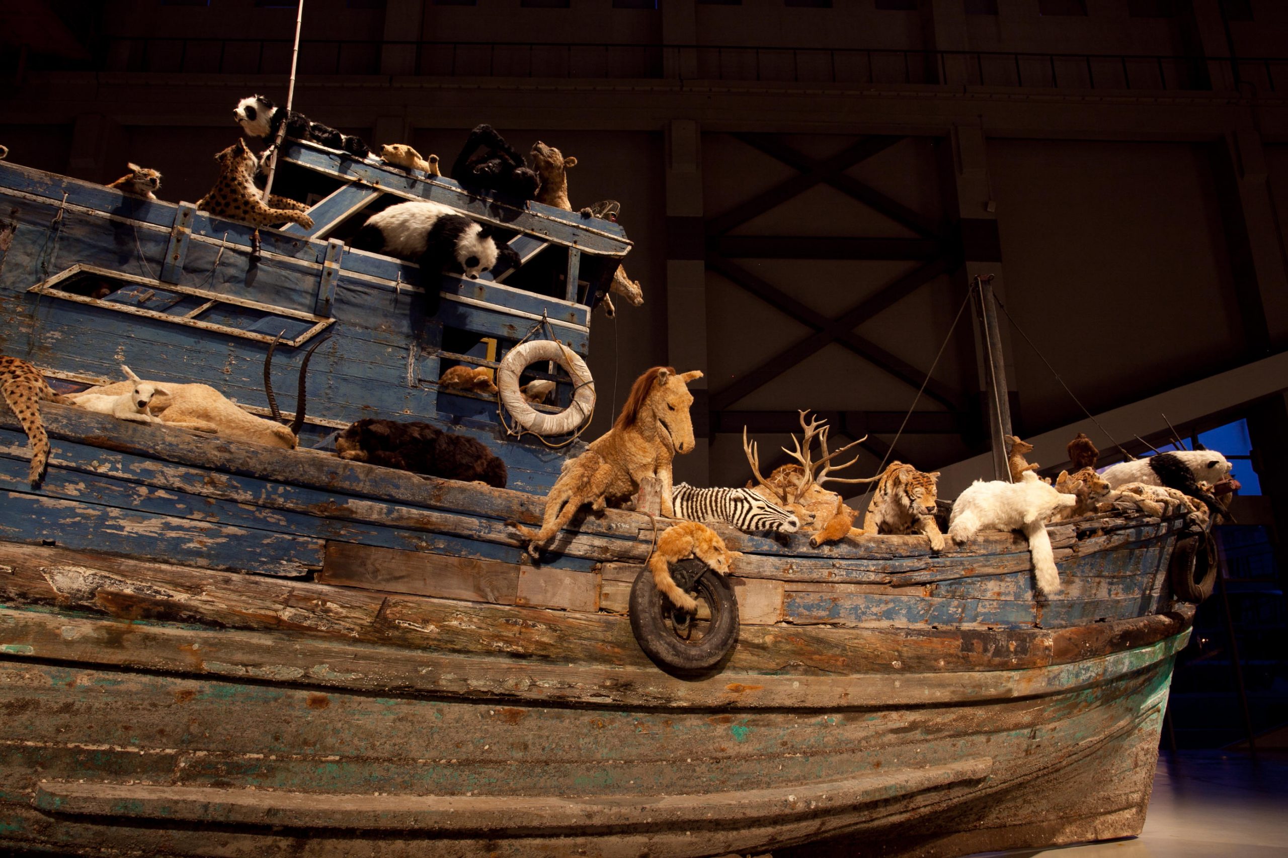 Una volta ricevuto l’incarico di costruire l’Arca, il nostro protagonista esce di casa e si imbatte in una coppia di gatti grigi che torneranno nel film, solo cambieranno colore: uno dei due diventerà rosso.
