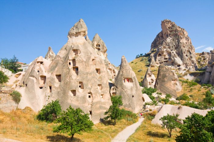 È un paesaggio surreale di imponenti formazioni scolpite nella roccia che cambiano colore ad ogni tramonto. Questi altissimi camini sono il frutto di un processo geologico iniziato milioni di anni fa a causa dell’attività eruttiva di vulcani come l’Erciyes e l’Hasan.