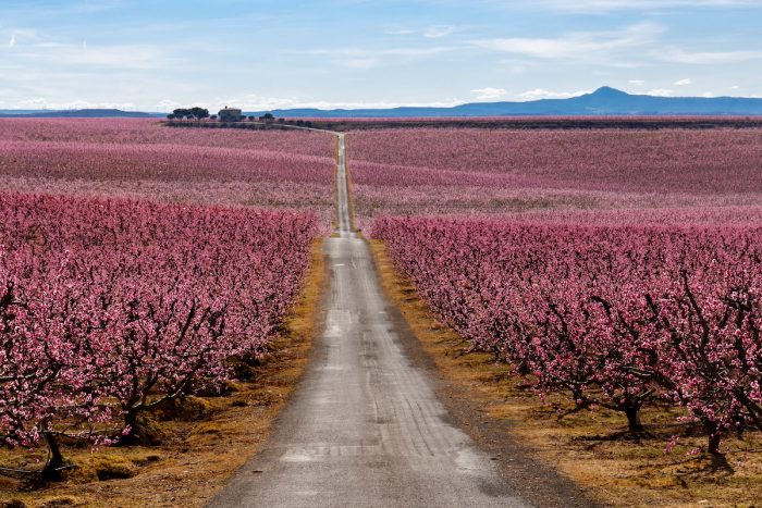 Non solo Olanda e Giappone, che oramai abbiamo imparato ad apprezzare con le loro distese di tulipani e ciliegi. In Spagna a marzo, distese apparentemente desertiche, si ricoprono di uno spettacolare rosa grazie alla fioritura dei peschi. Siamo nella Catalogna ad Aitona: qui a marzo oltre 800 ettari di terreno coltivati ad alberi da frutto , fioriscono regalando uno spettacolo d’avvero mozzafiato.