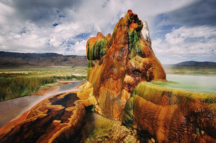 In Nevada nella contea del Washoe si trova il Fly Geyser, l’unico geyser artificiale al mondo. Quello che lo rende straordinario è il color arcobaleno del travertino che lo compone.