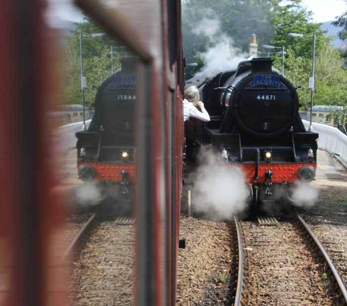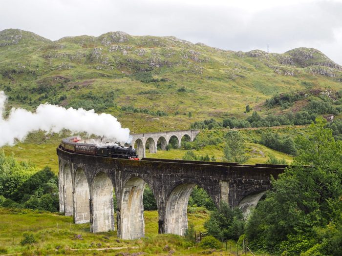 Si chiama The Jacobite ed è un treno a vapore turistico in funzione dal 1984. Opera sulla West Highland Line durante la stagione estiva. Si parte da Fort William nelle Highlands occidentali, per arrivare a Mallaig un porto sul lago Lochaber, sulla costa occidentale delle Highlands. Durante il viaggio vengono effettuate alcune fermate, come quella nel villaggio di Glenfinnan. C’è la possibilità su richiesta di fermarsi a Arisaig, dove se l’aria è limpida si possono vedere le Small Isles: Rum, Eigg, Muck e Canna e la punta meridionale di Skye. La corsa poi prosegue passando da Morar e dalle spiagge argentee immortalate nel film ‘Highlander‘ fino ad arrivare a Mallaig.