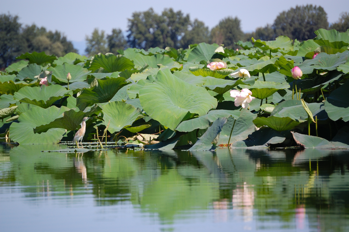 Qui si trova un’isola galleggiante di questi fiori, che grazie ad una divisione fatta da un piccolo corso d’acqua , è possibile attraversarla con le barche. Appartenente alla famiglia delle Nelumbonaceae, è una pianta acquatica i cui fiori possono arrivare a più di un metro e mezzo di altezza dal pelo dell’acqua. Le sue foglie, rotonde possono arrivare anche a 80 centimetri di diametro.