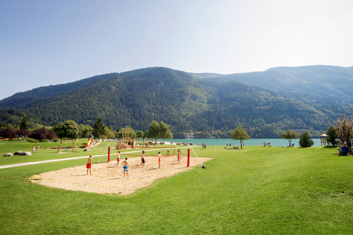 La “spiaggia” verde di Molveno