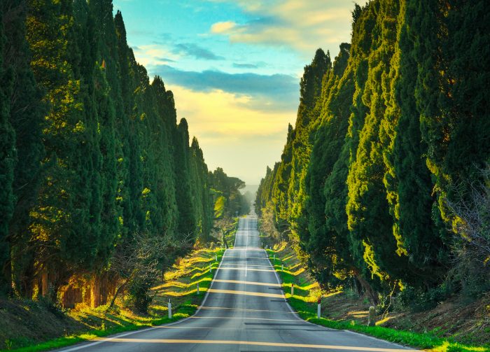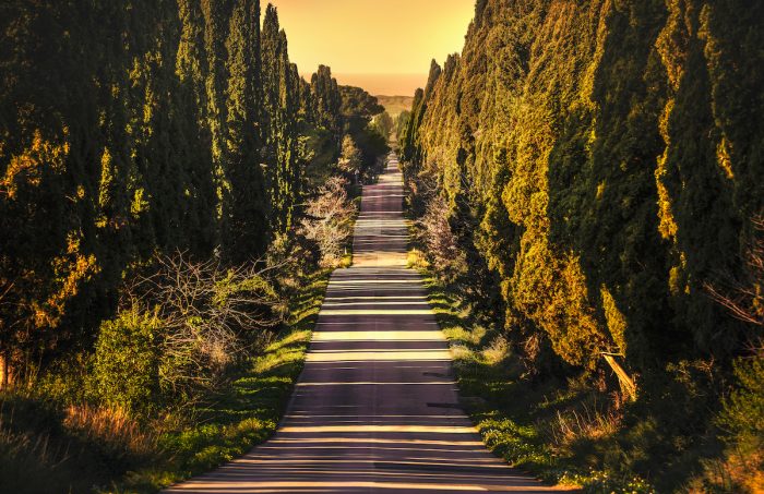 Siamo a Bolgheri nel Comune di Castagnato Carducci nel cuore della Maremma livornese. La strada in questione è nota con il nome Viale dei Cipressi è lunga quasi 5 km e collega l’oratorio di San Guido al suggestivo borgo di Bolgheri. Qui Giosuè Carducci scrisse nel 1886 l’ode “Davanti a San Guido” immortalando e rendendo celebre il viale dei Cipressi.