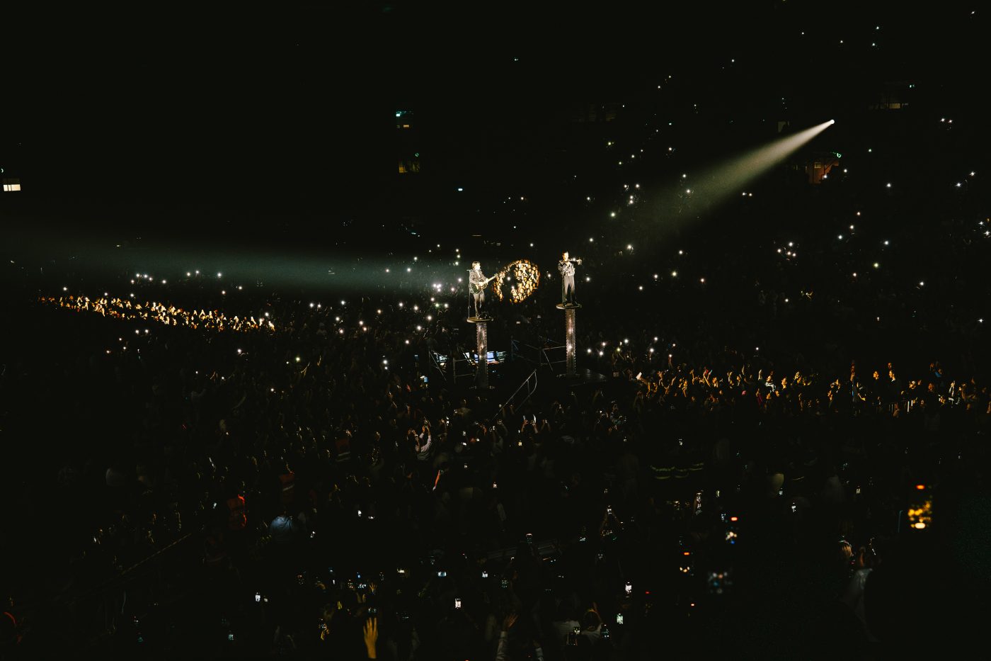Promessa mantenuta ampiamente. Il concerto diventa subito un karaoke, con i decibel di un coro a migliaia di voci che rende difficile anche ai protagonisti sentirsi negli in-ear. “Non mi era mai capitato di fare un concerto in cui faccio fatica a sentirmi perché le persone cantano più forte di me. Cantano più forte di tutti”, afferma tra gli applausi Federico. “Ma è bellissimo, siete parte di questo viaggio iniziato molti anni fa. Vi ringraziamo uno a uno per essere venuti e per la fiducia in Benji & Fede, nella nostra storia”.