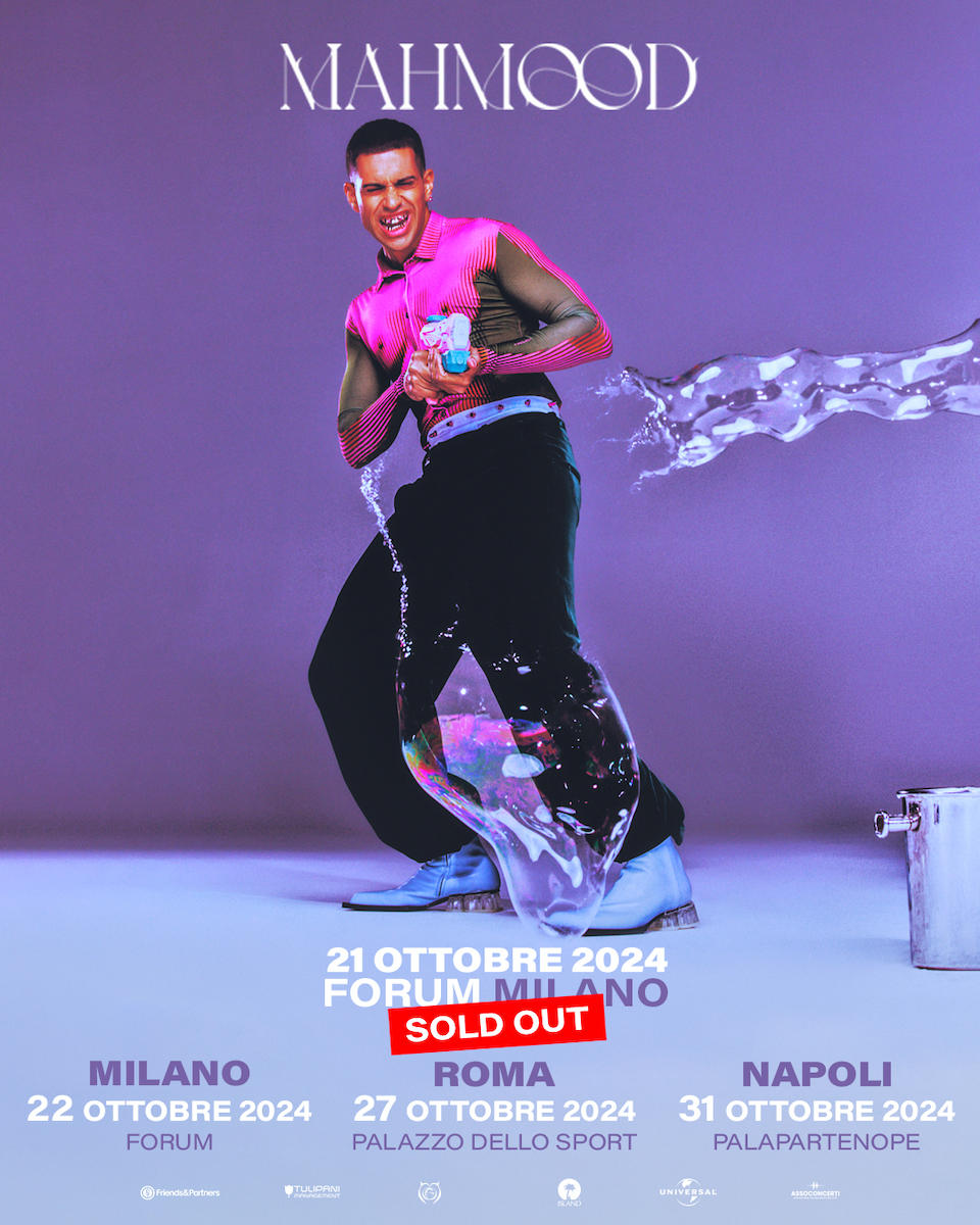 Sarà un anno ricco di appuntamenti per vedere Mahmood in tour. È sold out in appena 24 ore il live al Forum di Milano (21 ottobre 2024) che raddoppia con una seconda imperdibile data, prevista per il 22 ottobre 2024. Si aggiungono inoltre nuovi appuntamenti nei palazzetti italiani: il 27 ottobre al Palazzo dello Sport di Roma e il 31 ottobre al Palapartenope di Napoli. Le prevendite per la nuova data di Milano saranno disponibili dal 14 febbraio alle ore 16:00, mentre i biglietti per Roma e Napoli saranno disponibili a partire da giovedì 15 febbraio alle ore 12:00. Info biglietti: www.ticketone.it e www.friendsandpartners.it.