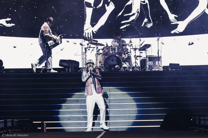 “Aggiungo – interviene di nuovo Riccardo – che essere una band oggi, lo ribadiamo sempre, è diverso rispetto ad essere un artista solista. Questo lo si vede e lo si tasta proprio con mano anche in un live. Nel senso che ci può essere l’‘Iron Man’, come si suol dire che si fa un live, ci può essere Bruce Springsteen, ci può essere anche Jovanotti, magari siamo d’accordo. Però il tema è che in sei, potendo anche creare scenicamente ‘un vai avanti tu, vado un attimo dietro, io respiro, poi ritorno io. Capiamo questo momento in modo tale che io non mi spreco troppo, ma tu ti sgoli completamente’”.