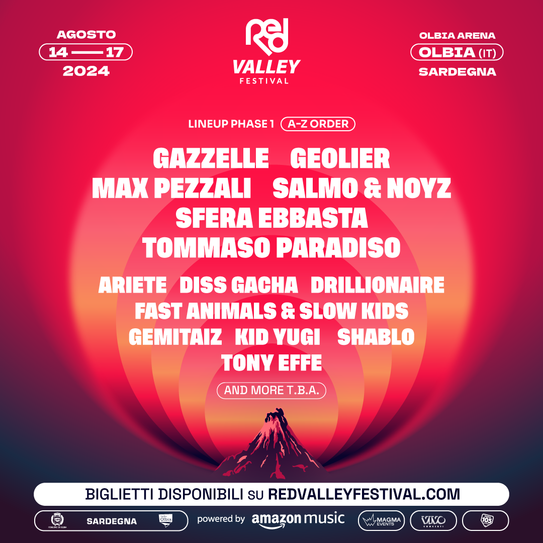 Powered by Amazon Music e prodotto da Magma Events e Vivo Concerti con la partnership radiofonica di Radio 105, il Red Valley Festival è un unicum in Italia. Nessun’altra rassegna musicale vanta, infatti, un cartellone così diversificato, che spazia dall’urban al pop, dall’elettronica alla dance.
