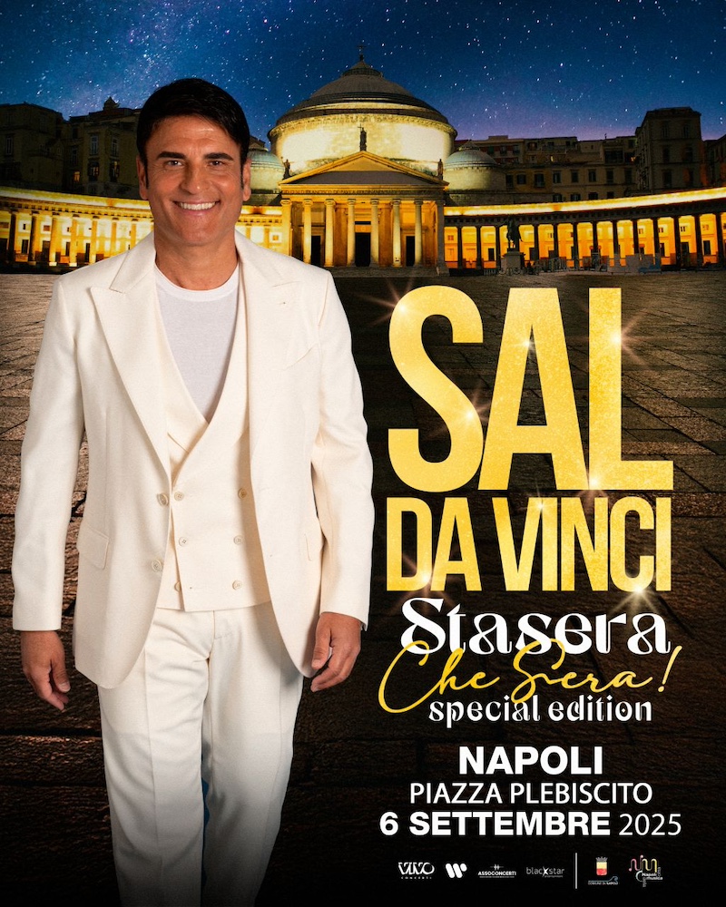 Dopo il trionfo al Teatro Augusteo con lo spettacolo Stasera… che sera!, che ha accolto oltre 40.000 spettatori in sole 24 repliche, Sal Da Vinci ci dà appuntamento al prossimo 6 settembre con Stasera che sera! Special Edition. Una serata-evento, consacrazione dei suoi oltre 40 anni di carriera, che lo vedrà esibirsi per la prima volta in uno dei luoghi simbolo della città di Napoli, Piazza del Plebiscito.