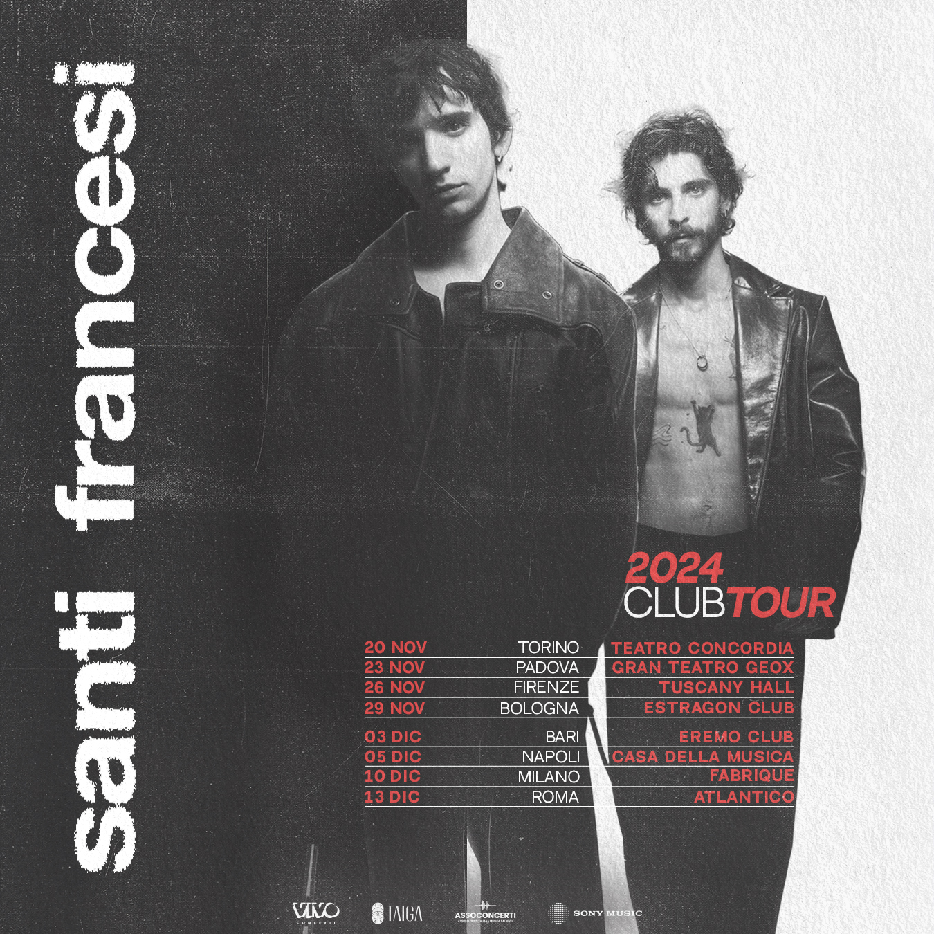 Dopo la partecipazione al Festival di Sanremo 2024 con L’amore in bocca – e il magistrale duetto con Skin nella serata delle cover –, i Santi Francesi annunciano la tournée nei club. Mario Francese e Alessandro De Santis si preparano, infatti, al CLUB TOUR 2024 che in autunno li vedrà protagonisti in alcune delle venue più importanti d’Italia.