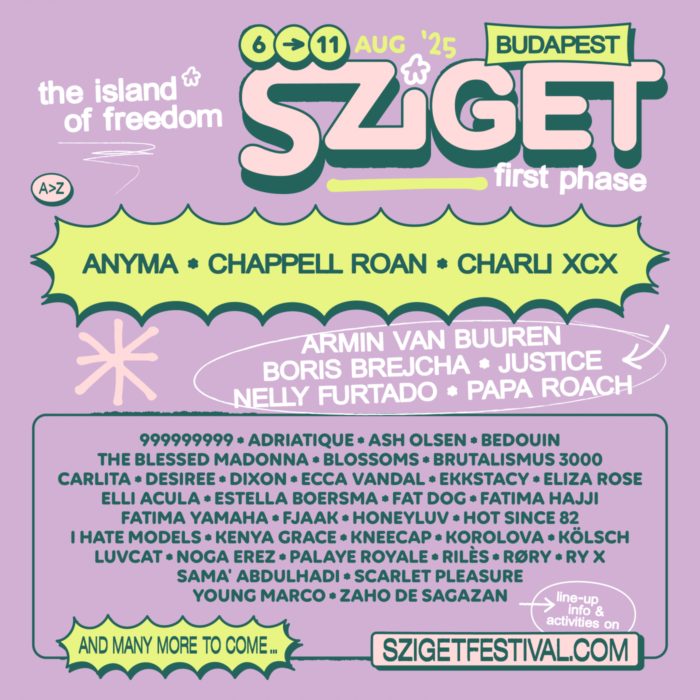 La lineup di Sziget Festival 2025 comprende una ricca selezione di artisti che abbracciano ogni genere musicale. La scena elettronica sarà dominata da giganti come Armin Van Buuren, Justice, Boris Brejcha, 999999999, I Hate Models, Fatima Yamaha, Adriatique, FJAAK. Spazio anche a nomi iconici e rivelazioni emergenti del pop che arricchiranno il panorama, a partire da Nelly Furtado, una delle star pop più amate al mondo, torna con un’attesissima performance. On stage anche Blossoms, RY X, Noga Erez, Kenya Grace, Scarlet Pleasure, Zaho de Sagazan, Fat Dog e EKKSTACY.