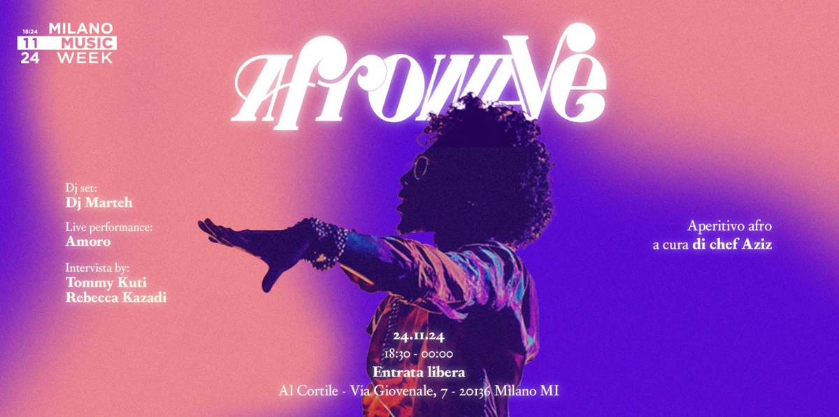 Il 24 novembre 2024, alle ore 18.30, Milano si accende delle sonorità e i colori di Afrowave, il format musicale di Tommy Kuti insieme a Dj Marteh e Rebecca Kazadi (qui per prenotarsi). L’evento, che si terrà Al Cortile (Via Giovenale, 7) nell’ambito della MMW24, celebra i suoni afro con il live di Amoro e i dj set di Dj Marteh. Ma non mancheranno i sapori, con un’esperienza culinaria afro-fusion proposta dallo chef Aziz