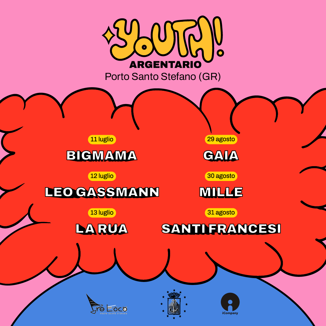 L’estate all’Argentario si arricchisce di un nuovo appuntamento musicale che propone sei concerti a Porto Santo Stefano (Grosseto) per la prima edizione di Youth! Argentario. Presentata da iCompany e la Pro Loco di Monte Argentario, con il contributo e il Patrocinio del Comune di Monte Argentario, la manifestazione vuole “cambiare rotta”. Così afferma Beatrice Sordini, Presidente della Pro Loco Argentario di Porto Santo Stefano. Per “puntare su un unico grande evento di qualità”.