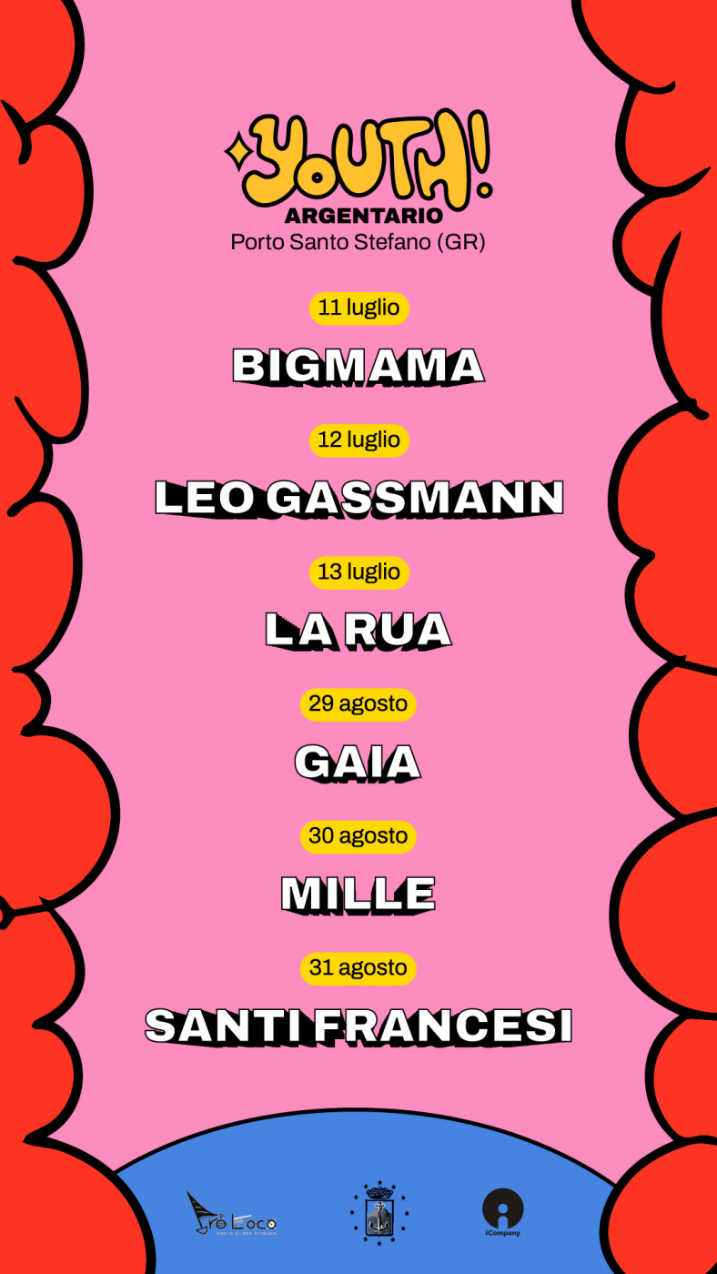 “Mi fa molto piacere poter avviare il progetto Youth! Argentario in collaborazione con Pro Loco e Comune – dichiara Massimo Bonelli – Avere la possibilità di realizzare un evento diffuso per la musica attuale in un luogo magico come l’Argentario è perfettamente in linea con ciò che da sempre proviamo a fare come iCompany. Lavoreremo per far sì che Youth! Argentario possa diventare nel tempo tanto una nuova vetrina live per giovani progetti artistici di qualità che uno spazio di visibilità e confronto per la scena musicale locale”.