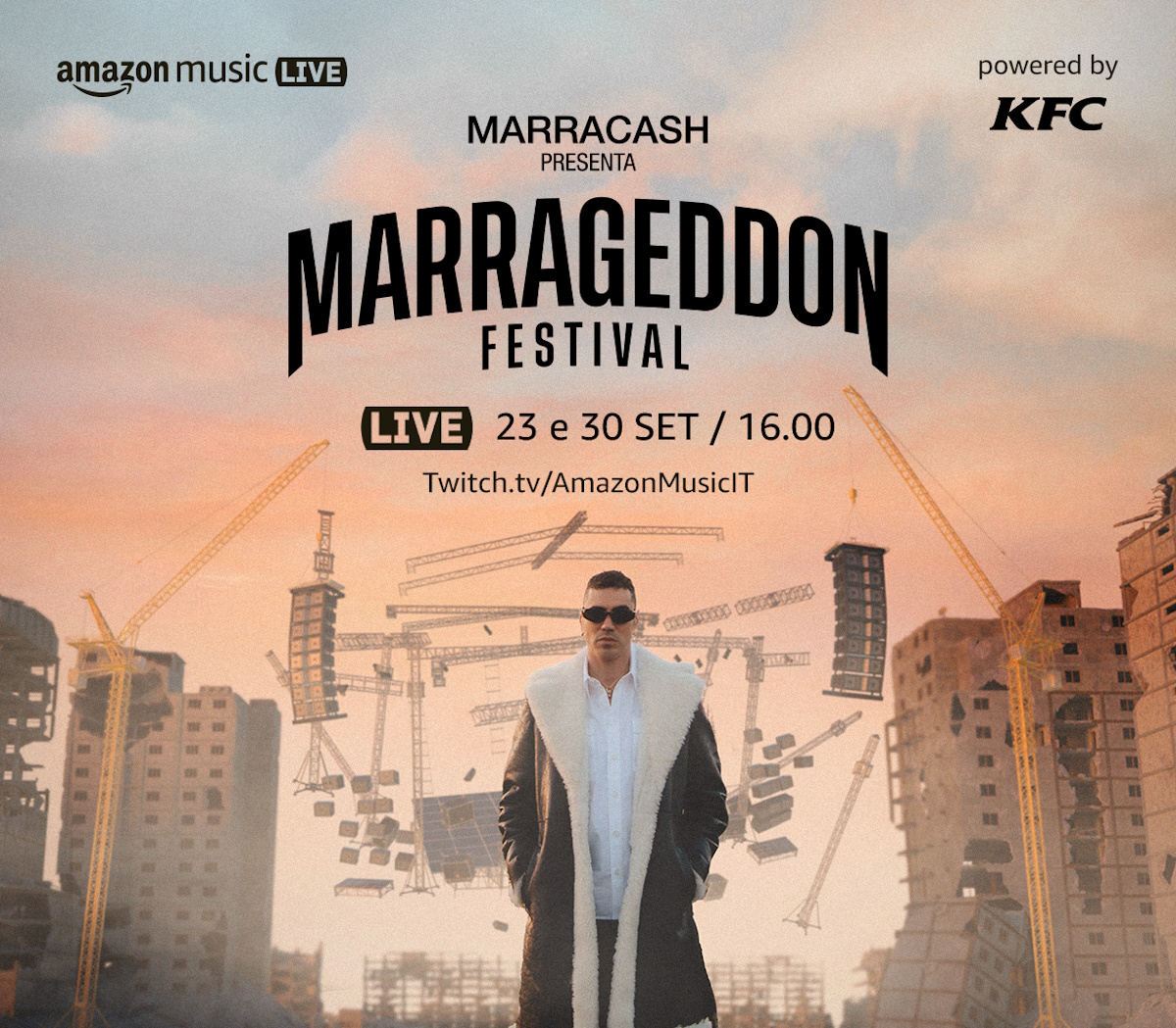 Prodotto da Friends & Partners, il festival sarà un evento unico e irripetibile che porta la firma di un artista come Marracash, celebrando il percorso che il rap ha fatto negli anni in Italia. Amazon Music permette ai fan e agli amanti della musica di assistere alle due date del Festival come se fossero nel parterre dello show.  l livestream di Marrageddon sono powered by KFC.