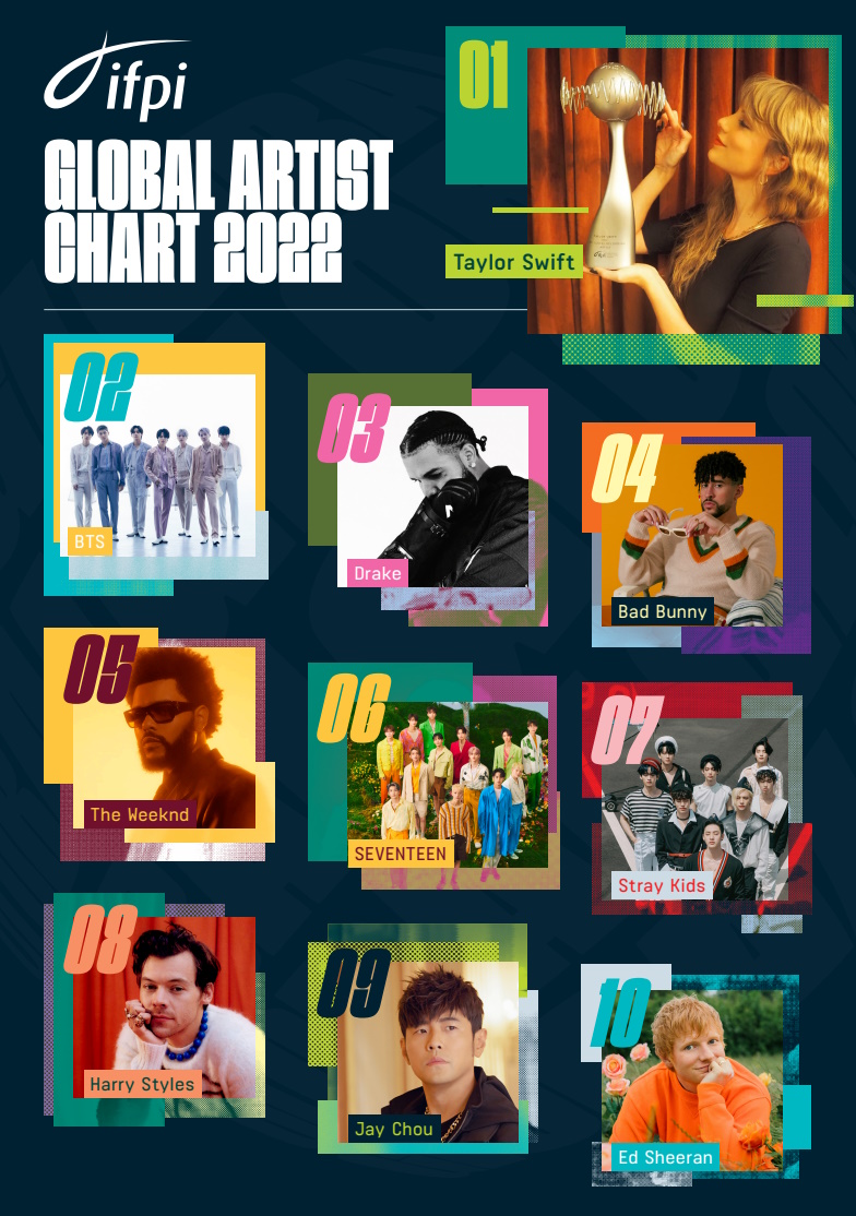 L’IFPI Global Recording Artist Chart riflette la varietà degli artisti che raggiungono il successo globale nell’industria di oggi. Ne è esempio la superstar portoricana Bad Bunny, arrivata al quarto posto. È il primo artista latino-americano a entrare nella Top 5 ed è la posizione più alta mai raggiunta per un artista che si esibisce prevalentemente in spagnolo.