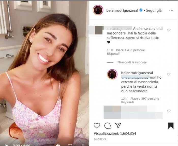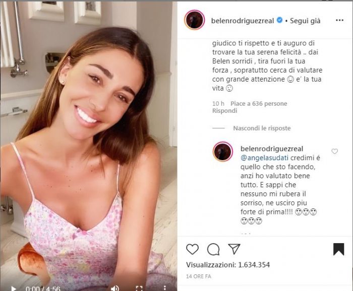 Belen ha deciso di rompere il silenzio approfittando dei social perché stanca di leggere falsità sul suo conto. “Quando leggo illazioni sul mio conto non ci sto più: se sono in giro e per caso arrivano delle persone, non dev’essere una mia responsabilità o qualcosa che ho organizzato io” ha aggiunto.