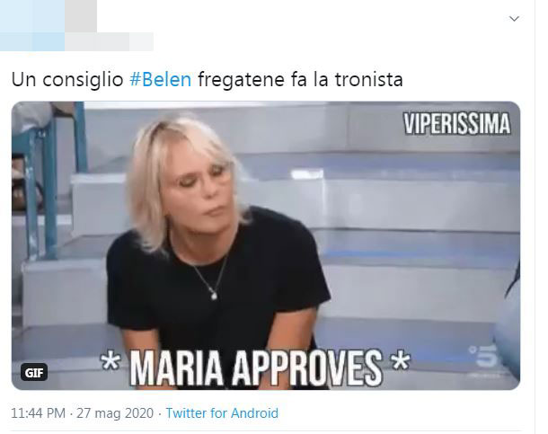 Ma c’è anche chi prova a strapparle un sorriso. “Fregatene fa la tronista” consiglia qualcuno su Twitter.