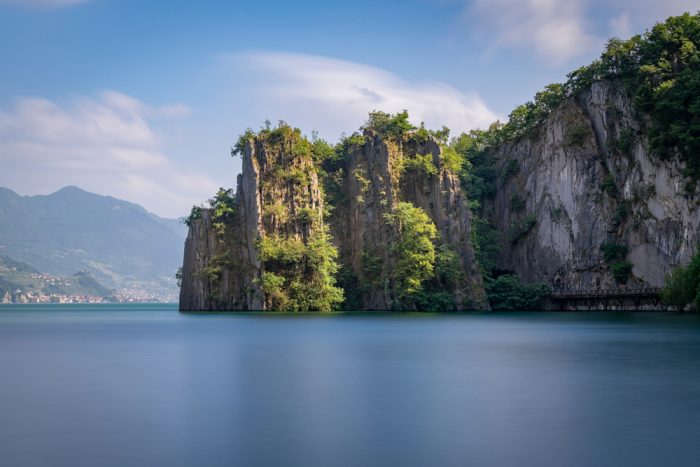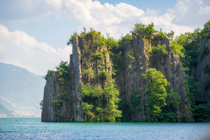 Le acque color smeraldo del lago d’Iseo rendono questo paesaggio che richiama il sud est asiatico ancor più affascinante.