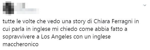 Senza considerare che c’è anche chi mette in dubbio le competenze linguistiche della moglie di Fedez. “Tutte le volte che vedo una story di Chiara Ferragni in cui parla in inglese mi chiedo come abbia fatto a sopravvivere a Los Angeles con un inglese maccheronico” ha cinguettato qualcuno su Twitter.