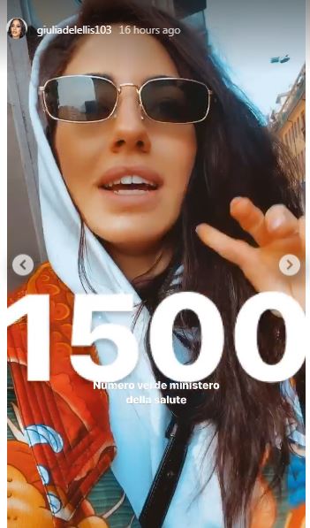 Giulia De Lellis ha ricordato tutte le indicazioni del Ministero della Salute, raccomandando a chi la segue dalla Lombardia di non andare in ospedale in caso di sintomi ma di chiamare l’1500, di lavarsi spesso le mani e di utilizzare mascherine adatte e non quelle di semplice carta (ha messo anche il codice delle mascherine in questione).