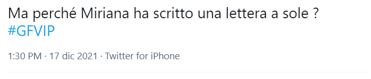 Altri curiosi si domandano: “Ma perché Miriana ha scritto una lettera a Soleil?”, tra le risposte si legge: “Perché stasera lei passa per buona e Soleil per cattiva”.
