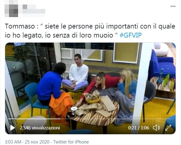 Seduti in quella che è stata ribattezzata la piazzetta Morra, il gruppo si confronta e Tommaso si lascia andare a un pianto liberatorio. “Siete le persone più importanti con le quali ho legato” dice tra le lacrime. “Senza di loro muoio” aggiunge. Maria Teresa corre a prendere dei fazzolettini, Stefania lo accarezza e Francesco lo stringe forte a sé, in un sincero abbraccio, mentre l’amico si abbandona alle lacrime.